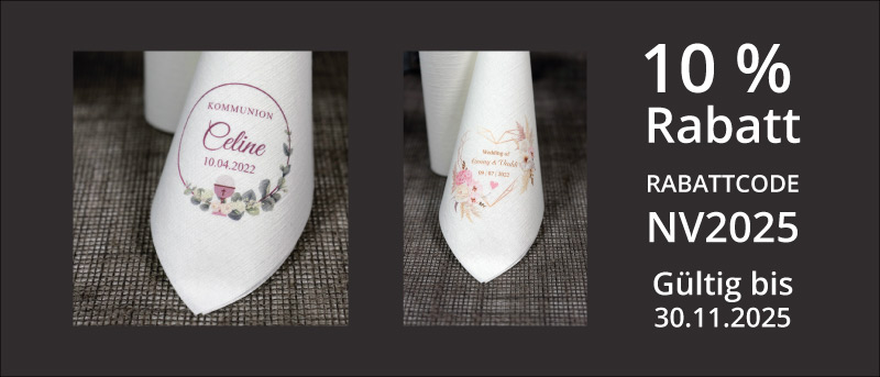 Zum Beispiel mit erlesenen Servietten, die wir nach Ihren Wünschen bedrucken.